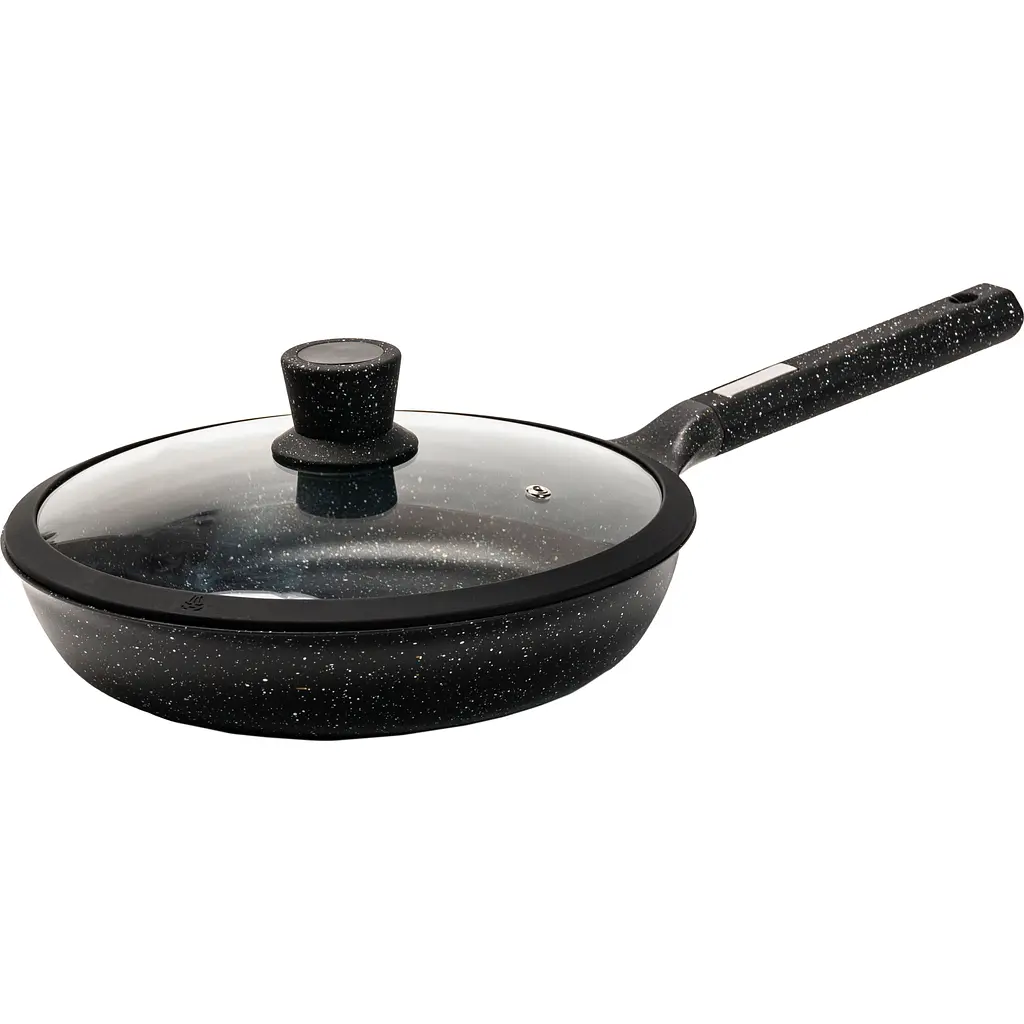Универсальная сковорода с диаметром 29 см станет отличным дополнением к вашей кухне. Изготовленная из высококачественного алюминия, она обеспечивает быстрый и равномерный нагрев, что позволяет приготовить блюда с максимальным сохранением их вкуса и питательных свойств. Данная сковорода с крышкой, что позволяет сохранять тепло и влагу внутри, обеспечивая оптимальные условия для приготовления блюд. Благодаря, антипригарному покрытию пища не прилипнет к поверхности, а очистка сковороды будет легкой и быстрой. Ручка не нагревается, тем самым обеспечивает комфорт и безопасность во время приготовления пищи. Особенности сковороды включают возможность мытья в посудомоечной машине, что значительно упрощает уход за ней. Сковорода совместима со всеми видами плит: газовыми, электрическими, индукционными плитами. Это делает ее чрезвычайно универсальной и удобной в любых условиях приготовления. Эта сковорода сочетает в себе высокую функциональность, универсальность и стильный дизайн, что делает ее идеальным выбором для любой хозяйки, которая ценит качество и удобство на кухне.