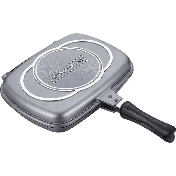 Сковорода – двусторонняя. Такой вариант обеспечивает отличную циркуляцию теплого воздуха внутри и защищает от брызг во время приготовления. Поверхность внутри – ребристая. В комплекте есть уплотнитель.