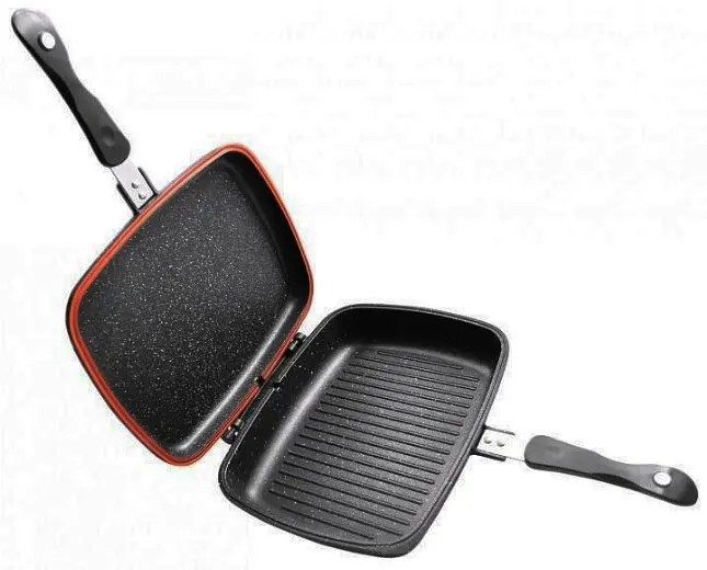 Жир, в свою очередь, отделяется от мяса при приготовлении пищи и стекает в пространство между ребрами сковороды, где из-за жара испаряется. Таким образом еда получается полностью обезжиренной и диетической. Так же благодаря ребрам, пища не контактирует с поверхностью накала.