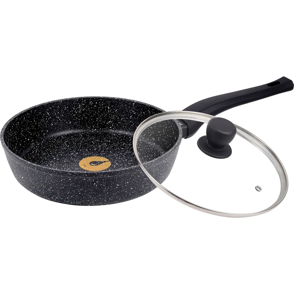 Сверхпрочное и долговечное мраморное антипригарное покрытие MARBLE превращает эту сковороду в очень надежное и долговечное изделие. Антипригарное покрытие не содержит PFOA (перфтороктановой кислоты) и является безопасным для здоровья.