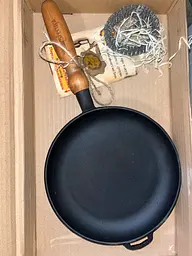 Гарна якість чавуну. Чудова ручка з дерева яку легко знімати і повертати на місце. Оригінальна та змістовна інструкція в який багато порад. Дружина задоволена. Рекомендую для придбання.