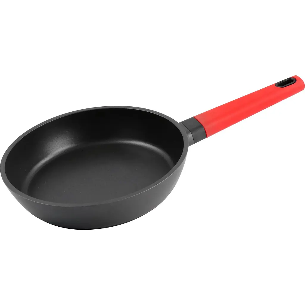 Изготовлена из литого алюминия толщиной 6 мм. Толстое, многослойное дно равномерно прогревается и подходит для всех видов плит, включая индукционные. Внутреннее покрытие - трехслойное антипригарное покрытие, усиленное минеральными частицами. Такое покрытие не содержит перфтороктановую кислоту и яявляется абсолютно безвредным, отличается высокой прочностью и долговечностью, стойкостью к царапинам.