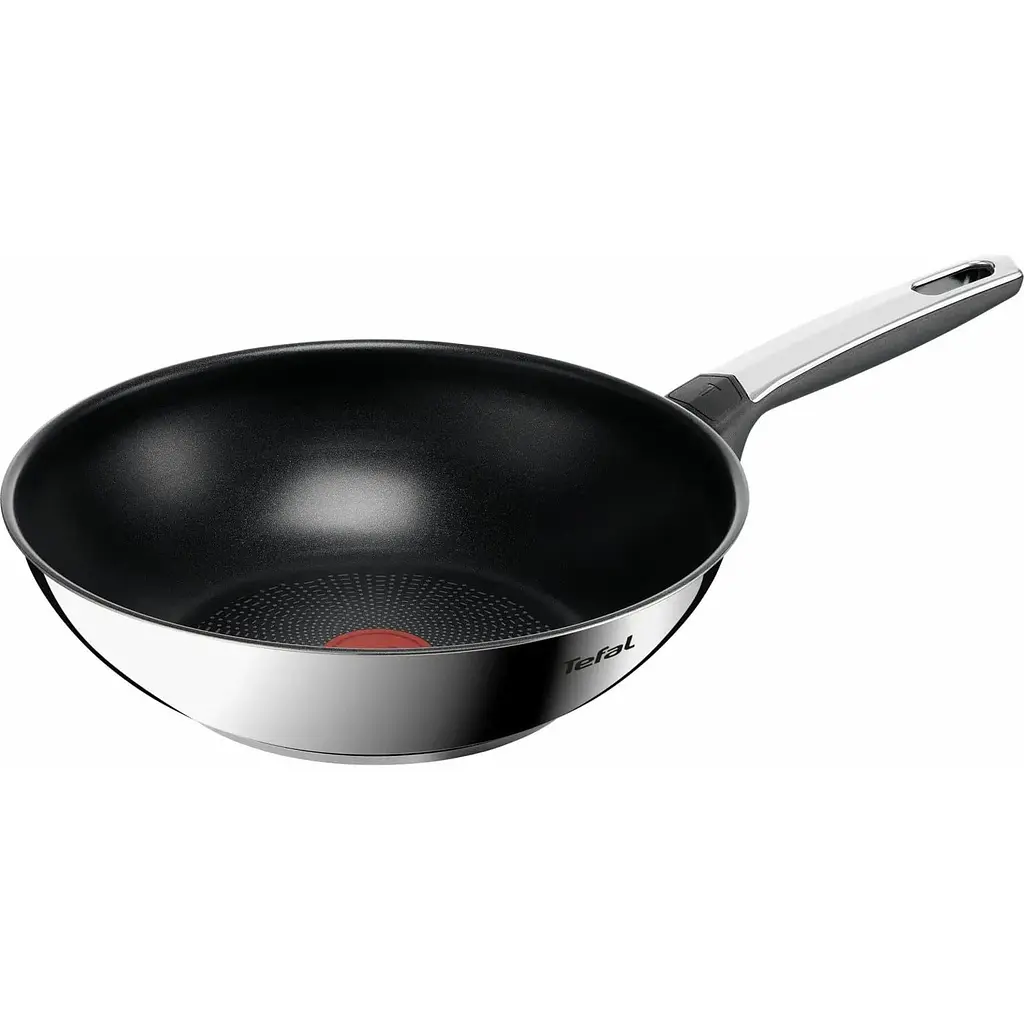 Сковорода ВОК Tefal Emotion+ сочетает нержавеющее основание, износостойкое антипригарное покрытие и индикатор контроля температуры. Конструкция обеспечивает равномерный нагрев и стабильность при приготовлении блюд с интенсивным обжариванием и перемешиванием.