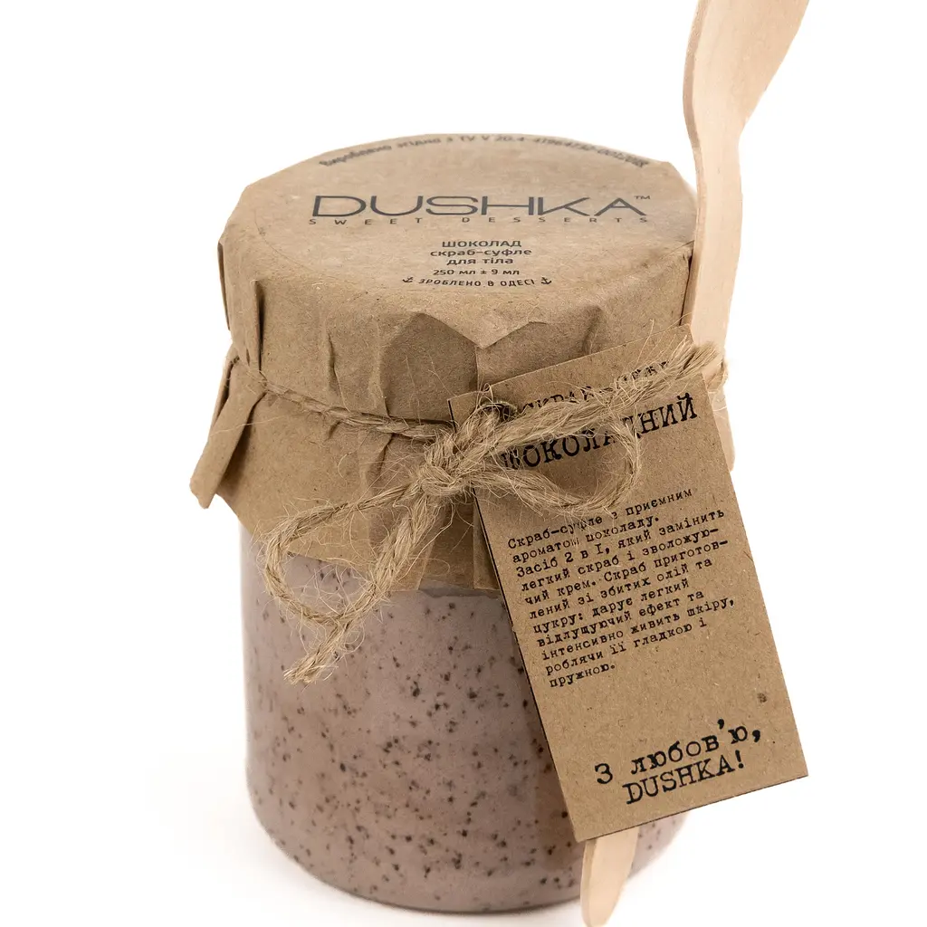 Очередное лакомство для самых заядлых сладкоежек — скраб-суфле «Шоколадный». Побалуйте тело этим «десертом» и смотрите, чтобы любимый вас не съел, аромат шоколада еще некоторое время будет радовать вас после процедуры.