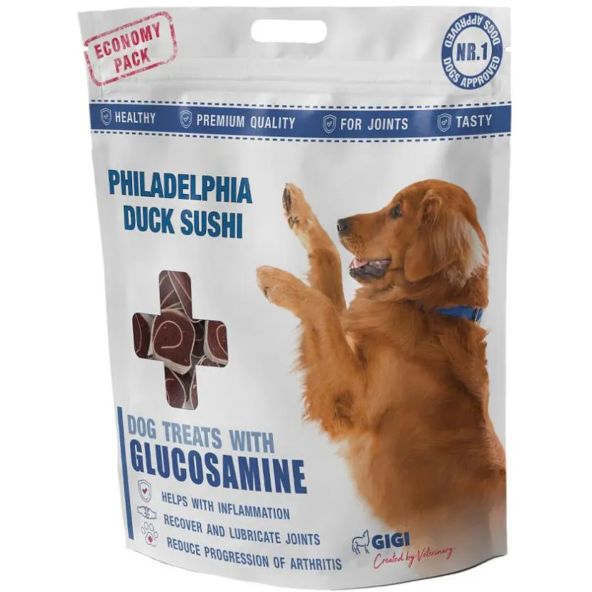 Состав: Утка 46,7%, Рыба 20%, Рисовая мука 9%, Растительный белок 10%, Крахмал 8%, Глицерин 5,9%, соль 0,2%, сорбат калия 0,1% (1k202), глюкозамин 0,1%. Анализ: сырой белок 20%, сырые масла и жиры 3,5%, сырая зола 1,5%, сырая клетчатка 3,5%, влажность 18%.