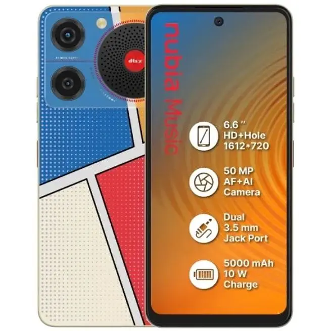Красочный, абсолютно ни на что не похожий дизайн Nubia music напоминает ретро-проигрыватель виниловых дисков. Тонкий корпус, контрастные цвета и сложная геометрия рисунка усиливают ощущение присутствия на диско-вечеринке - поэтому музыка в таком оформлении звучит ярче и мощнее.