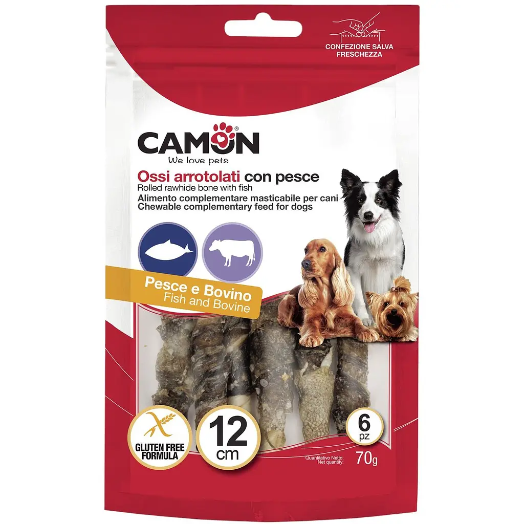 Этот снек Camon является идеальным выбором для собак, которым необходим дополнительный источник белка. Изготовленный из натуральной говяжьей кожи, обернутой ароматной рыбой, этот продукт удовлетворяет жевательный инстинкт вашего питомца.