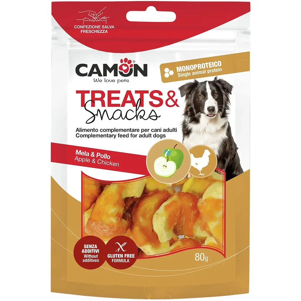 До конца акции 68 днейСнек Camon Кусочки яблока с курицей - это отличное сочетание вкуса и пользы для вашей собаки. Вкусные кусочки курицы, обернутые вокруг нежного яблока, станут идеальным перекусом или поощрением для вашего любимца.