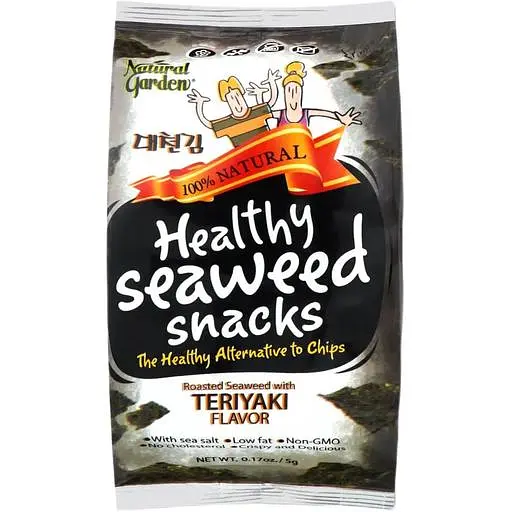 Каждый лист снеков тонко пропитан соусом терияки, создавая не только насыщенный вкус, но и невероятное вкусовое удовлетворение. Natural Garden нори со вкусом терияки идеально подходят в качестве легкого перекуса, который можно взять с собой в офис или школу, а также отлично дополнит вашу тарелку с суши или другими любимыми азиатскими блюдами. Здоровые и полные вкуса, эти снеки - отличный способ добавить в свой рацион витамины и минералы, наслаждаясь при этом утонченным и экзотическим вкусом.