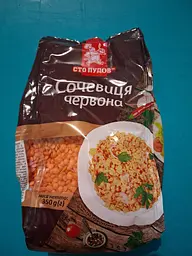 Сочевиця Сто пудів червона - якісний продукт, чиста без сторонніх включень. Мені особисто подобається саме червона, варимо, як окремо - гарніром, так і в складі супів. Сочевиця - родич гороха, квасолі, боба містить джерело рослинних білків і частково замінює м'ясо. Рекомендую: бо смачно і поживно.