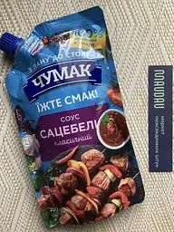 Замовив на Маудау Соус Чумак Сацебелі. Вже купквав його раніше у Сільпо. Подобається цей соус. Має гарний склад: томати, перець, перець чілі, часник, коріандр, кріп, пажитник, чабер, орегано. Соус дійсно орігінальний та дуже смачний. Достатньо густий, запашний. Ідеально підходить до страв з мʼяса . Робить їх насиченими та пікантними. Смачного.