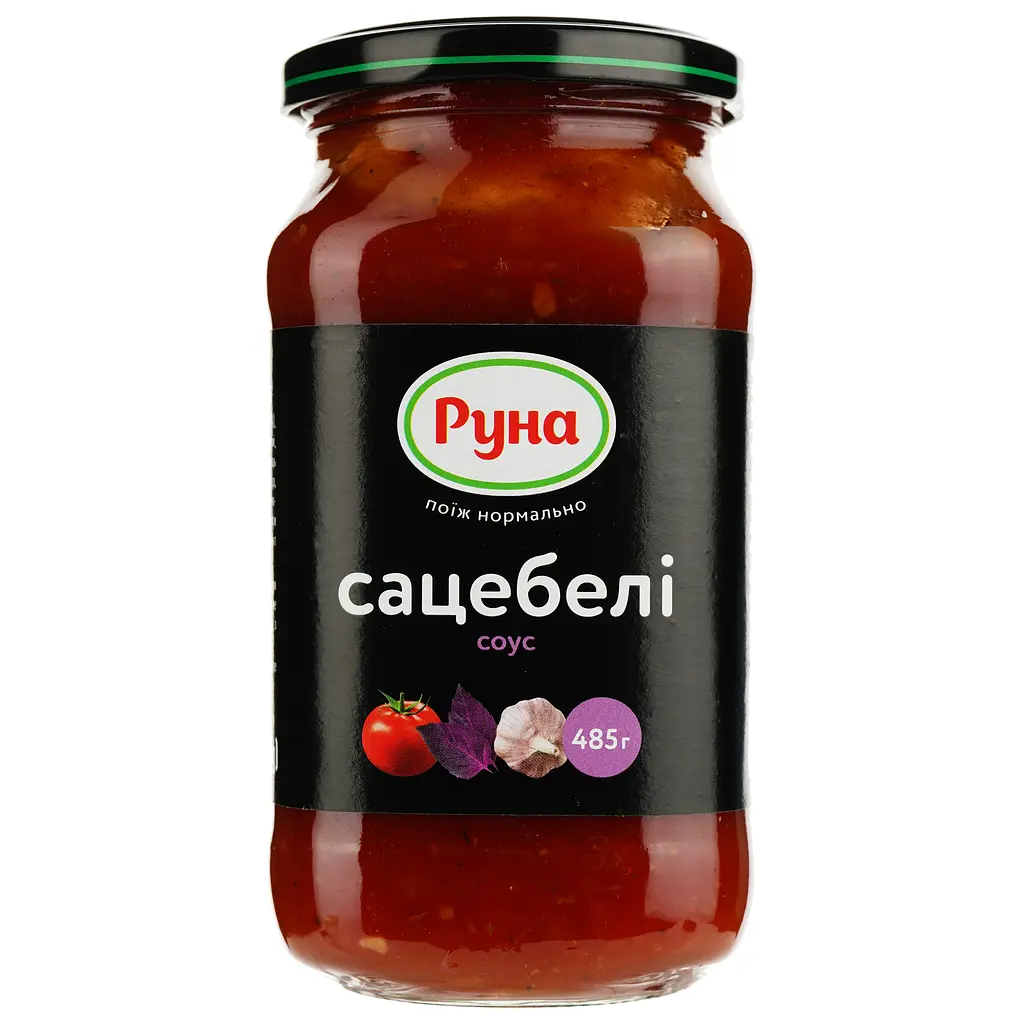 Соус Руна Сацебелі має насичений томатно-часниковий смак та аромат. Не надто гострий. Добре поєднується з куркою, свининою, овочами, спагетті.