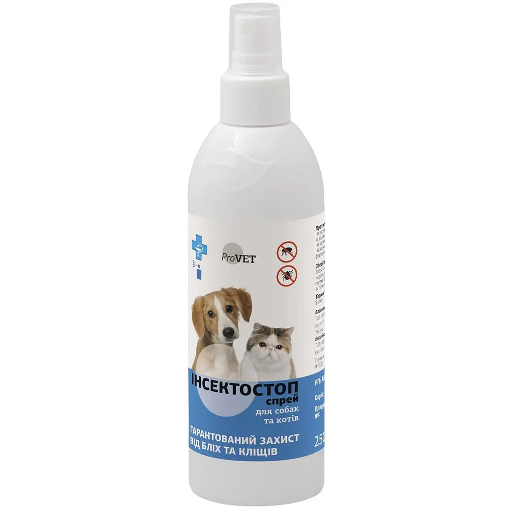 Спрей от блох и клещей для взрослых кошек и собак ProVET Инсектостоп – это эффективное средство для защиты домашних животных от паразитов.