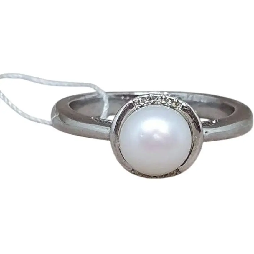 До конца акции 295 днейСеребряное кольцо 925 пробы с жемчугом (имитация) и фианитами, покрыто родием
