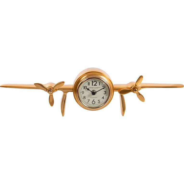 Статуэтка в форме самолета дополнена часами, что придает ей функциональность и оригинальность. Изящный дизайн отлично подойдет как для дома, так и для офиса.