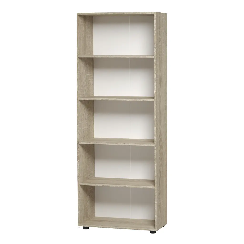 Корпус изготовлен из прочного ДСП, что гарантирует надежность конструкции и длительный срок эксплуатации. Декор дуб сонома придает презентабельный вид и гармонично сочетается с разными стилями офисного интерьера. Стеллаж устанавливается на пол и оснащен стойкими ножками для обеспечения стабильности.