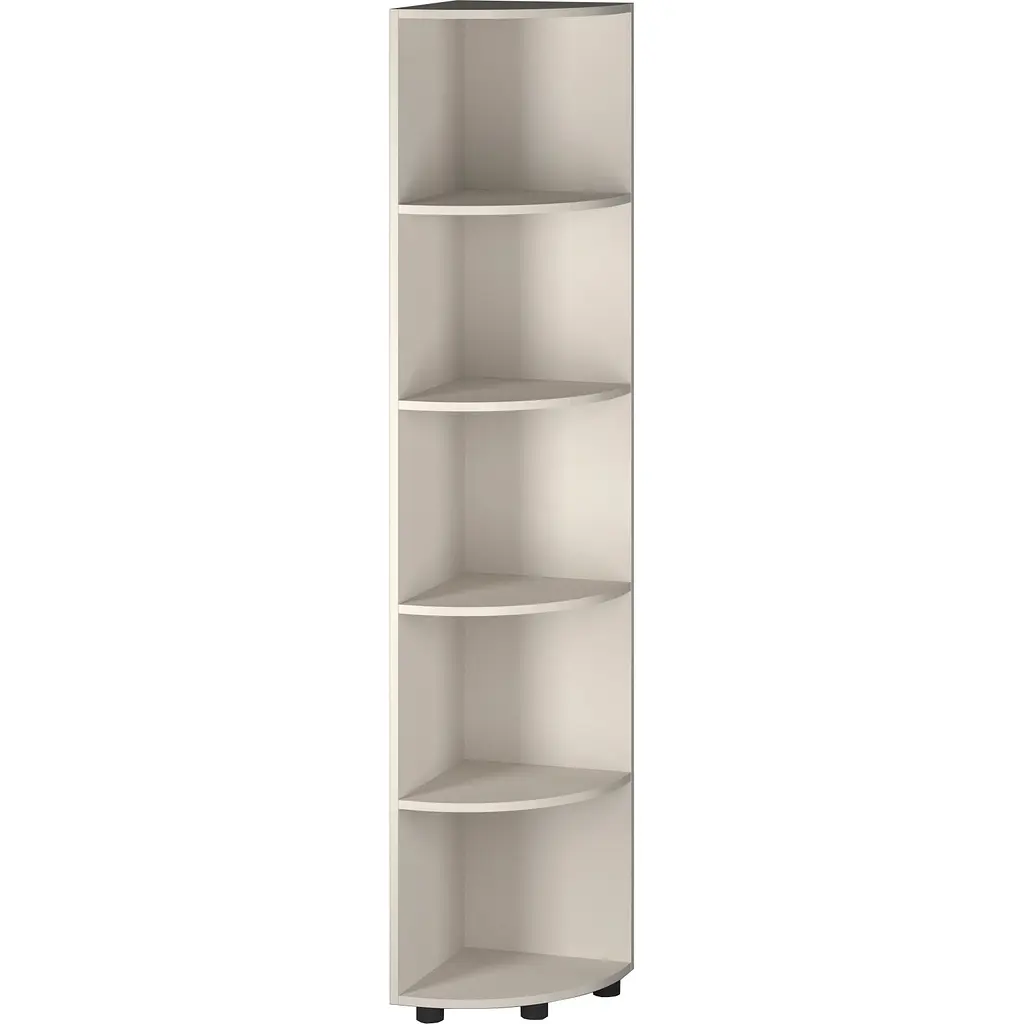 Стеллаж угловой ОП-733 Orange-Line представляет собой высокую систему хранения с пятью открытыми полками в цвете кашемир. Габариты 347х347х1825 мм делают его идеальным решением для организации пространства в офисных помещениях с высокими потолками. Угловая конструкция максимально эффективно использует угловые зоны помещения, часто остающиеся незадействованными. Пять просторных полок обеспечивают значительный объем хранения документации, папок, офисных приборов и декоративных элементов.