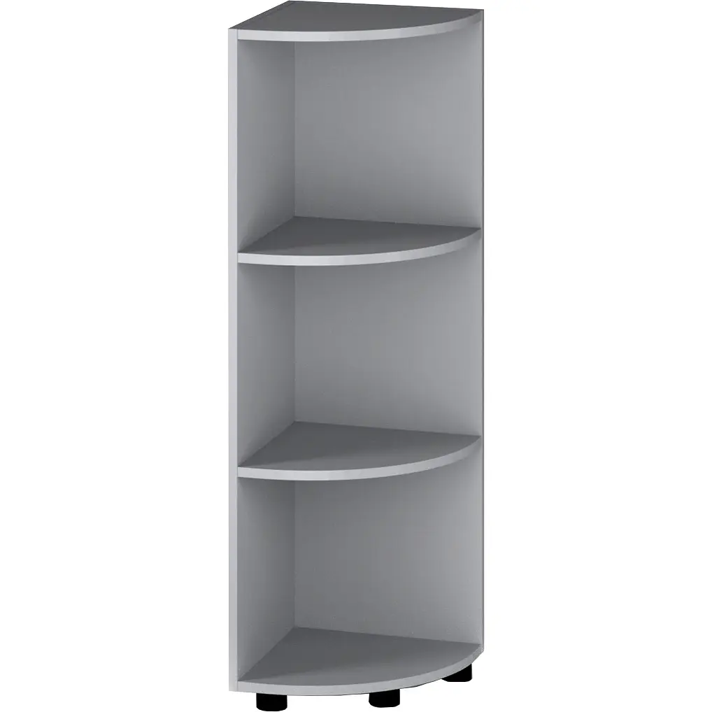 Стеллаж угловой средний ОП-732 Orange-Line с габаритами 347х347х1103 мм выполнен в цвете серый. Конструкция оснащена тремя открытыми полками, обеспечивающими удобное хранение документов, канцелярских приборов и декоративных элементов в офисном пространстве.