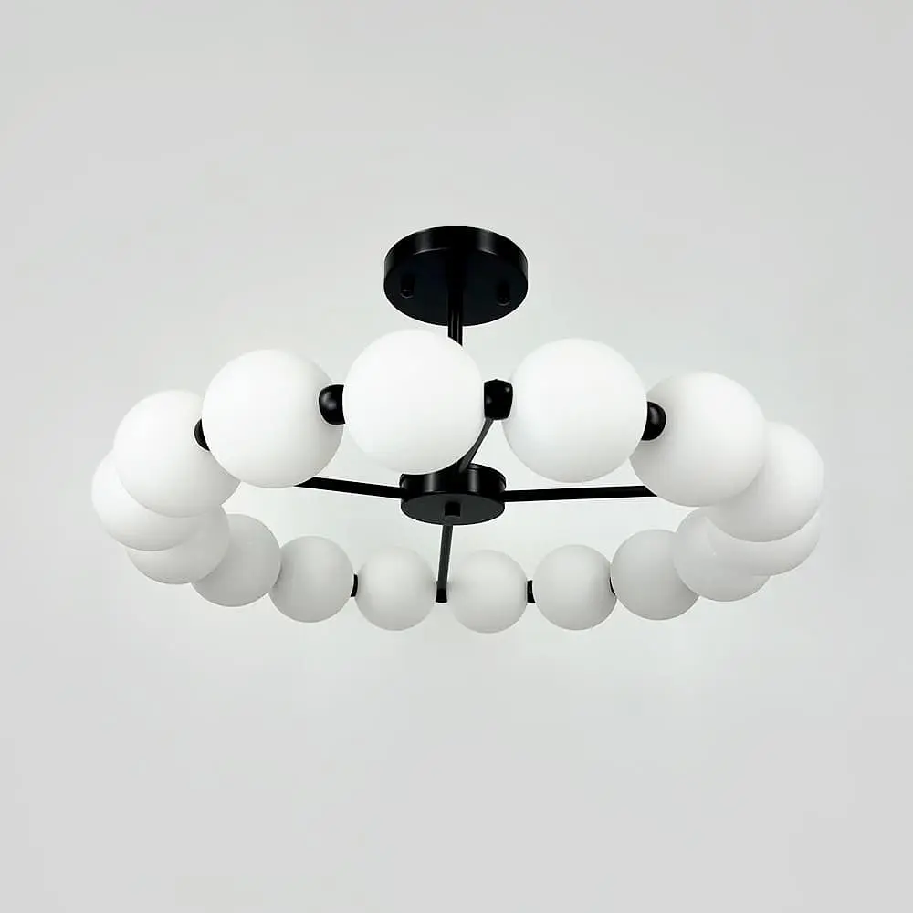 Потолочная люстра в форме элегантного кольца из белых полимерных световых шариков станет изысканным дополнением современного интерьера. Встроенные светодиоды с нейтральной температурой света создают комфортное и равномерное освещение, подчеркивая эстетику помещения. Каркас люстры изготовлен из прочного металла черного цвета, что придает модели сдержанный минималистичный вид и гармонично сочетается с различными стилями интерьера. Модель доступна в двух размерах: диаметр 50 см, высота 36 см, мощность 25 Вт - идеальный выбор для компактных помещений. Диаметр 63 см, высота 36 см, мощность 34 Вт - отличное решение для просторных комнат. Эта люстра не только источник света, но и стильный дизайнерский акцент, который подчеркнет изысканность вашего пространства. Тип цоколя: 36 Форма_изделия: Круг Тип помещения: Люстры для гостиной (в зал) Серия: Pearl Цвет основы: Черный Материал плафона: мрамор Размер потолочной основы: 15х2,5 см Цветовая температура: 4000К Материал основы: Металл Размер монтажной планки: 11 см Тип крепления: Монтажная планка Мощность (Вт): 40