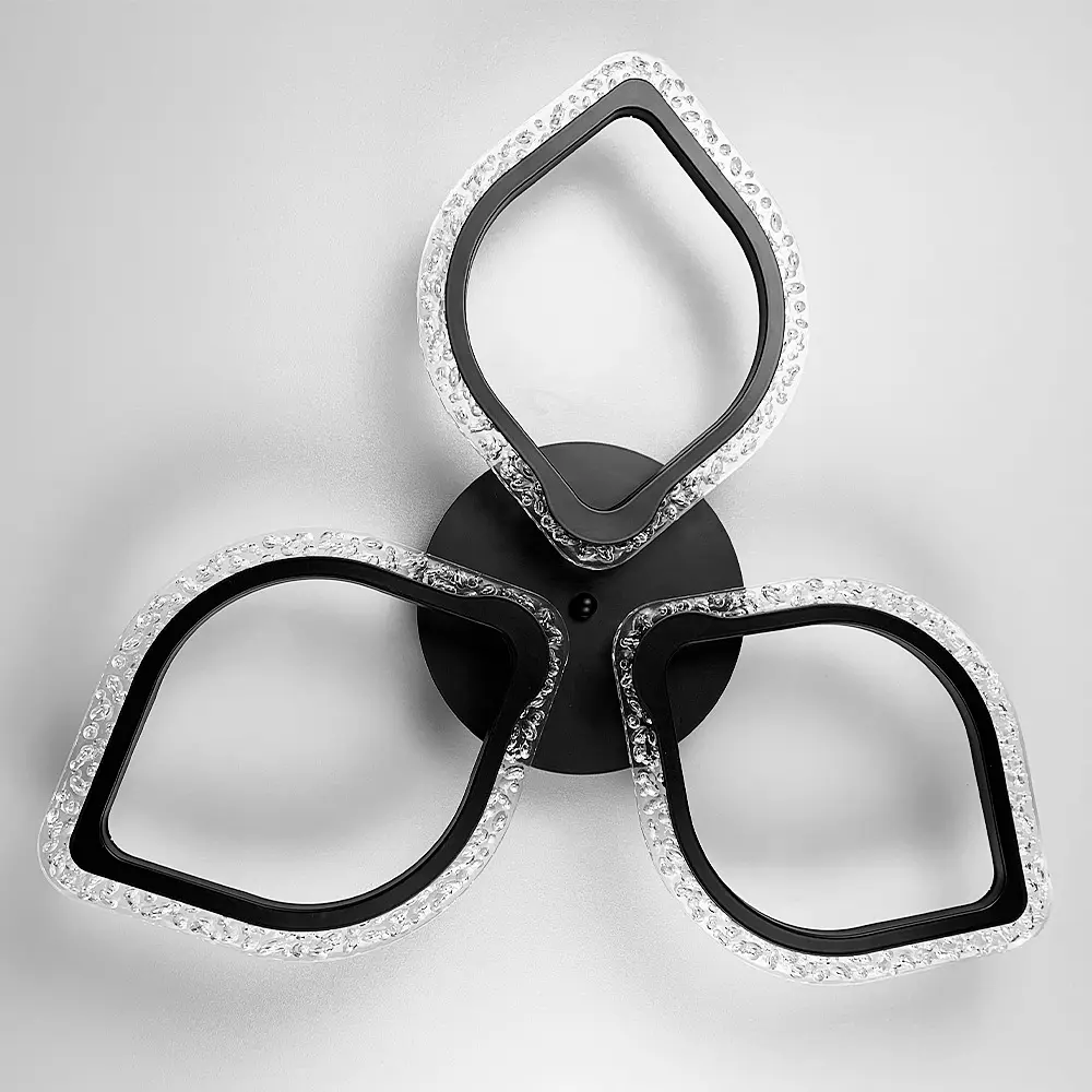 Потолочная LED люстра в черном корпусе на 3 листочка с невероятным рельефным декором по краям, благодаря которому люстра выглядит современно и изысканно. Мощность люстры - 47 Вт (24 Вт теплое и холодное + 6 Вт ночник). Это вариант люстры для вашего дома, если у вас низкие потолки. Цвет основания: 10 Серия: A 2522 Размер потолочного основания: 20х4 см Цветовая температура: 3000–4500–6000К Материал основания: Металл Размер монтажной планки: 10 см Тип крепления: Монтажная планка Мощность (Вт): 47