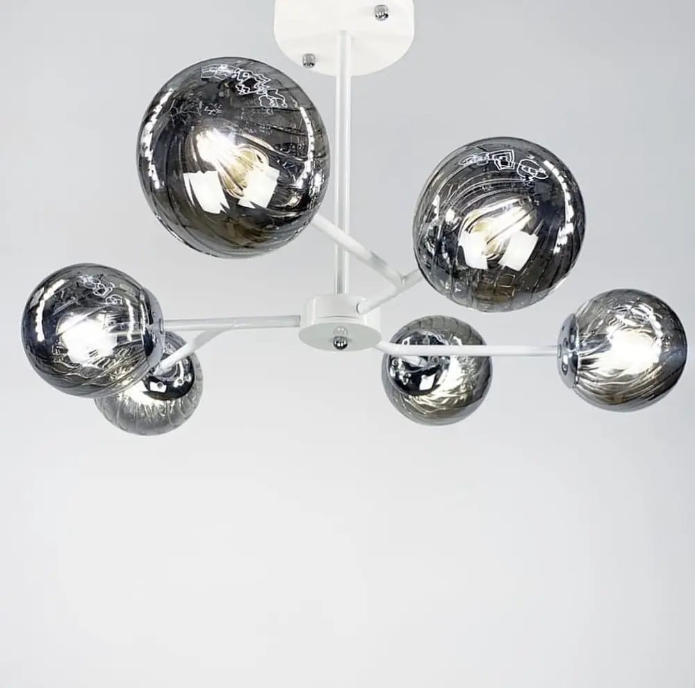 Минималистичный потолочный светильник на 6 или 10 плафонов в корпусе из металла белого цвета. Плафоны доступны в двух вариантах: прозрачный или графитовый. Цвет плафона: 66. Форма изделия: круг. Тип помещения: Люстры для гостиной (в зал) Серия: 8122 E27 Цвет основания: Белый Максимальная высота: 55 см Минимальная высота: 20 см Тип цоколя: E27 Размер плафона: 12 см Материал основания: Металл Размер монтажной планки: 12 см Тип крепления: Монтажная планка Количество источников света: 6