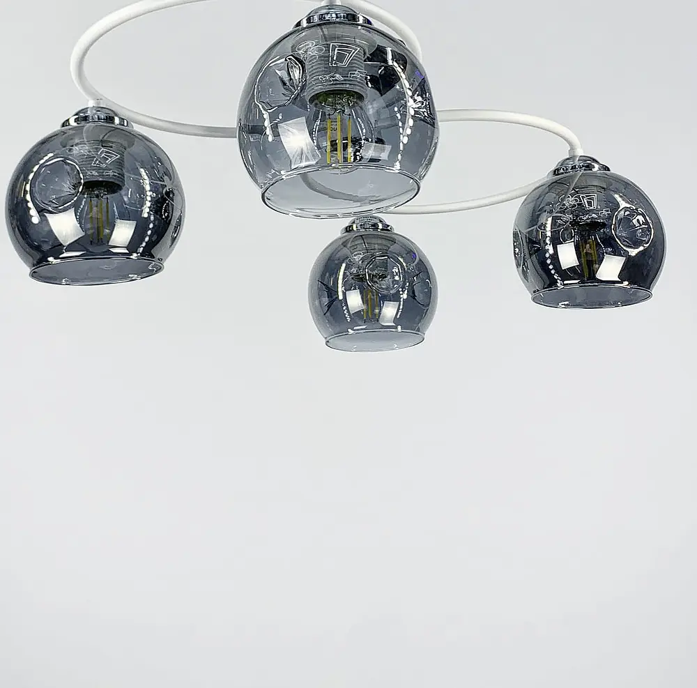 Потолочная люстра-орбита в двух цветах корпуса - белый и черный с графитовыми или янтарными плафонами. В нашем ассортименте представлено 3 комплектации данной модели: на 4, 6 и 8 плафонов. Эта люстра подходит для современных гостиных или спален, где важно сохранить минималистичный стиль и создать уютное освещение. А ее небольшая высота также делает ее идеальной для помещений с низкими потолками. Мощность (Вт): 50 Форма изделия: Круг Тип помещения: Люстры для гостиной (в зал) Серия: 7060 Цвет основания: Белый Максимальная высота: 28 см Минимальная высота: 20 см Тип цоколя: E27 Размер плафона: 11 см Материал основания: Металл Размер монтажной планки: 10 см Тип крепления: Монтажная планка Количество источников света: 4
