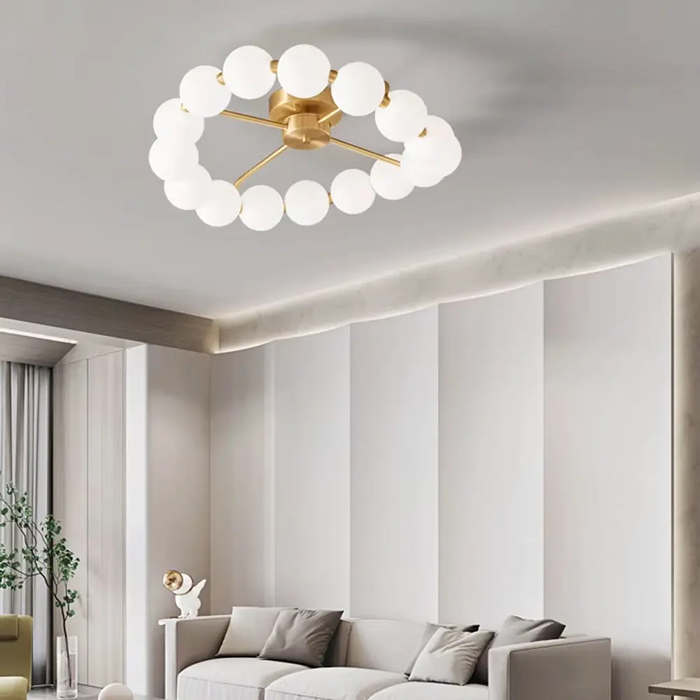 Потолочная люстра в форме элегантного кольца из белых полимерных световых шариков станет изысканным дополнением современного интерьера. Встроенные светодиоды с нейтральной температурой света создают комфортное и равномерное освещение, подчеркивая эстетику помещения. Каркас люстры изготовлен из прочного металла цвета латунь, что придает модели роскошный вид и гармонично сочетается с различными стилями интерьера. Модель доступна в двух размерах: Диаметр 50 см, высота 36 см, мощность 25 Вт - идеальный выбор для компактных помещений. Диаметр 77 см, высота 25 см, мощность 47 Вт - отличное решение для просторных комнат. Эта люстра не только источник света, но и стильный дизайнерский акцент, который подчеркнет изысканность вашего пространства. Мощность (Вт): 20 Форма_изделия: Круг Тип помещения: Люстры для гостиной (в зал) Серия: Pearl Цвет основы: Латунь Материал плафона: мрамор Размер потолочной основы: 15х2,5 см Цветовая температура: 4000К Тип цоколя: LED-модуль Материал основы: Металл Размер монтажной планки: 11 см Тип крепления: Монтажная планка