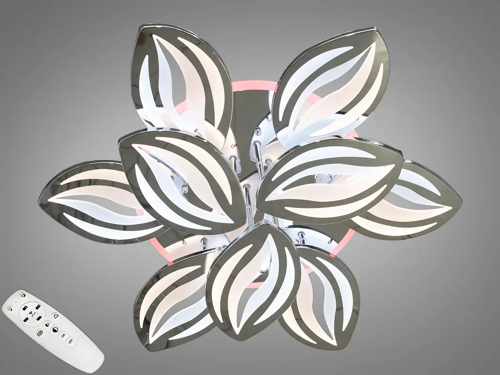 Встречайте самую хитовую модель светодиодной люстры в хроме. Потолочная светодиодная люстра в спальню от "Диаша" является поэтическим симфоническим произведением, сочетающим в себе мягкость света и органичность формы. С ее 165W мощности, акриловый плафон в форме распустившегося цветка не только освещает пространство, но и придает ему жизнь и динамику, создавая визуально гипнотизирующий эффект.