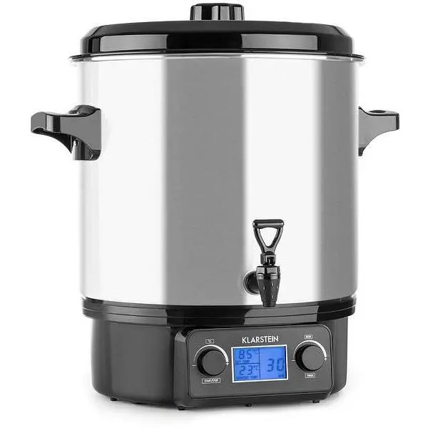 Полностью автоматическая консервная машина Klarstein Biggie Digital - это несложный кухонный помощник, позволяющий легко хранить пищу натурально, вкусно и здорово. Красители и консерванты, сахарные бомбы и продукты сомнительного происхождения остались в прошлом в вашем амбаре: домашняя еда всегда самая вкусная - независимо от того, это фрукты и овощи, мясные и колбасные изделия. Большая кастрюля из нержавеющей стали объемом 27 литров вмещает одновременно до 14 однолитровых банок. Температура и время приготовления выбираются совершенно несложным способом с помощью двух поворотных переключателей, после чего полностью автоматическая машина мощностью 2000 Вт работает полностью самостоятельно и автоматически выключается, когда таймер заканчивается. Четкий цифровой дисплей показывает текущую температуру в кастрюле, а также оставшееся время на таймере. С помощью практического крана можно слить воду или набрать горячий глинтвейн, чай или сок.