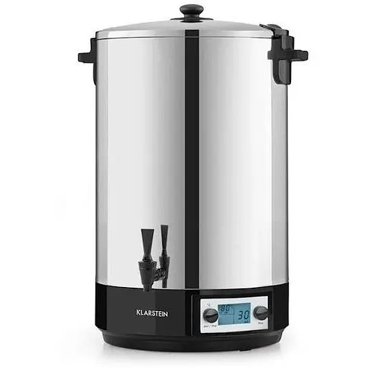 Однако возможности Klarstein KonfiStar Digital 50 идут еще дальше. Благодаря нейтральной на вкус и гигиенической внутренней части из нержавеющей стали, прохладно касающемуся сливному крану и встроенной функции поддержания тепла, он также идеально подходит как диспенсер для горячего чая, пунша или глинтвейна, вечеринок, фуршетов или конференций. комнаты.