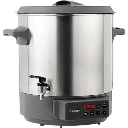 Мощный нагрев: экономичная машина с мощностью 1800 Вт. Устройство 2-в-1: практическое использование в качестве консервации и диспенсера для горячих напитков для чая, пунша или глинтвейна. Цифровое управление: можно установить температуру от 30 до 100 °C и время приготовления от 5 минут до 12 часов.