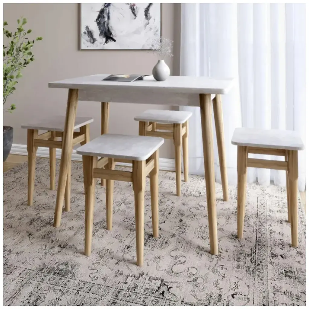 Стол имеет компактный размер и может легко разместиться в любом уголке комнаты. Кроме того, деревянные ножки изделий придают ему натуральную красоту, дополняя любой интерьер. Этот набор станет отличным решением для небольших кухонь или столовых, создавая уютное место для ежедневных обедов и встреч.