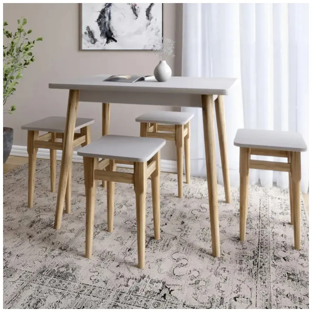 Стол имеет компактный размер и может легко разместиться в любом уголке комнаты. Кроме того, деревянные ножки изделий придают ему натуральную красоту, дополняя любой интерьер. Этот набор станет отличным решением для небольших кухонь или столовых, создавая уютное место для ежедневных обедов и встреч.