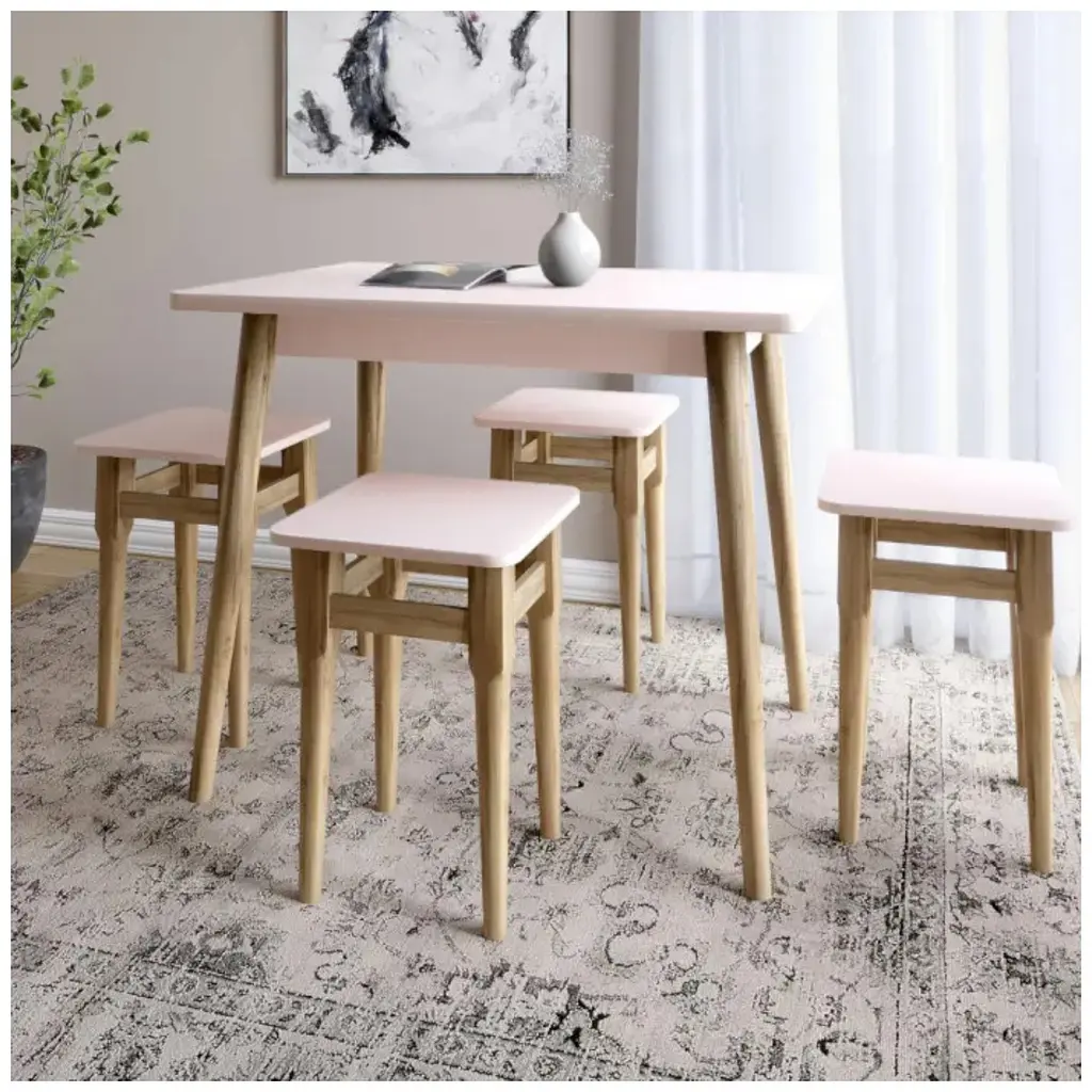 Стол имеет компактный размер и может легко разместиться в любом уголке комнаты. Кроме того, деревянные ножки изделий придают ему натуральную красоту, дополняя любой интерьер. Этот набор станет отличным решением для небольших кухонь или столовых, создавая уютное место для ежедневных обедов и встреч.