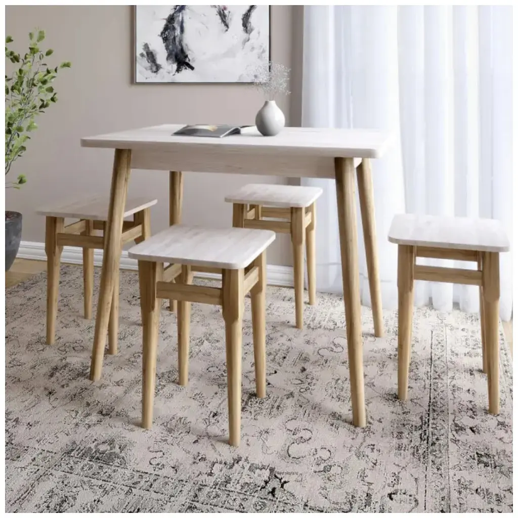 Стол имеет компактный размер и может легко разместиться в любом уголке комнаты. Кроме того, деревянные ножки изделий придают ему натуральную красоту, дополняя любой интерьер. Этот набор станет отличным решением для небольших кухонь или столовых, создавая уютное место для ежедневных обедов и встреч.