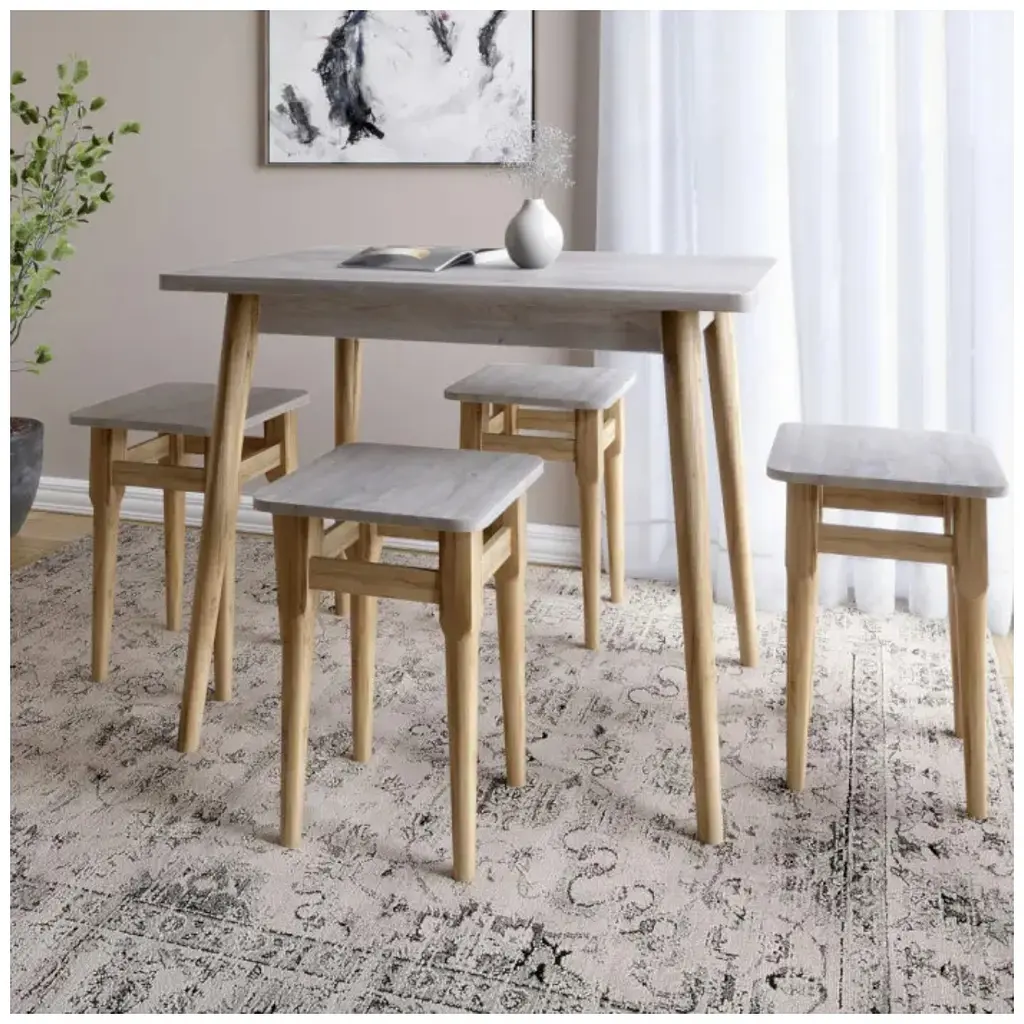 Стол имеет компактный размер и может легко разместиться в любом уголке комнаты. Кроме того, деревянные ножки изделий придают ему натуральную красоту, дополняя любой интерьер. Этот набор станет отличным решением для небольших кухонь или столовых, создавая уютное место для ежедневных обедов и встреч.