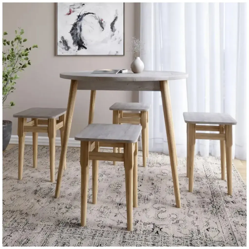 Обеденный набор Майами-1 с круглым столом и четырьмя табуретами – это практичное и стильное решение для уютной кухни или столовой. Компактный круглый стол идеально подходит для небольших просторов, создавая атмосферу уюта и удобства для семейных обедов или встреч с друзьями. Четыре крепких табурета обеспечивают комфортную посадку, легко размещаются под столом, экономя место. Такой комплект гармонично впишется в интерьер, добавив функциональность и тепло вашей обеденной зоне.