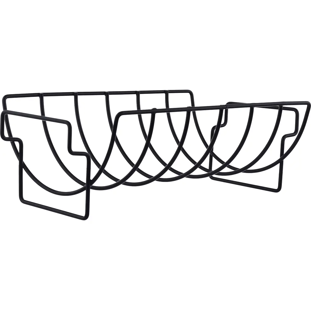 В отличие от привычного для приготовления ребер, непосредственно на решетке, используя такой аксессуар как стойка для ребер, позволяет готовить ребра вертикально. "Что это дает?" – спросите вы. Вертикальное расположение продукта имеет ряд преимуществ: увеличивает количество ребер приготовленных за раз, ребра не нужно переворачивать, их легко смазывать соусом (маринадом) для придания изысканного аромата и вкуса, экономия места на поверхности жарки, что позволяет приготовить несколько блюд одновременно. Использовать этот аксессуар вы можете для приготовления и других блюд, перевернув стойку, у вас получится корзина для приготовления больших кусков мяса и птицы. Стойка для ребер изготовлена из качественной стали с антипригарным покрытием. Ее использование значительно упрощает приготовление любимых блюд и делает процесс приготовления более комфортным!