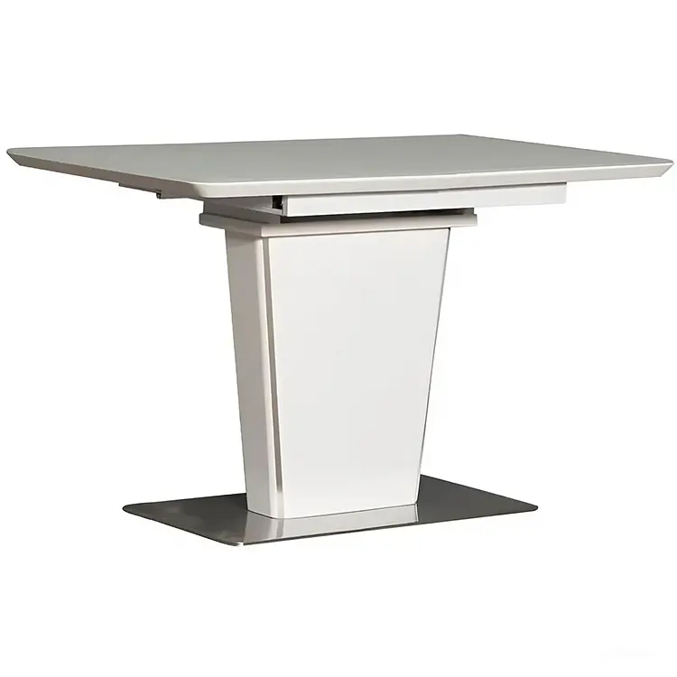 Белоснежный обеденный стол из закаленного стекла, МДФ и металла - отличное решение для вашего интерьера. Эта мебель станет главным элементом столовой или гостиной, будет привлекать внимание всех гостей.