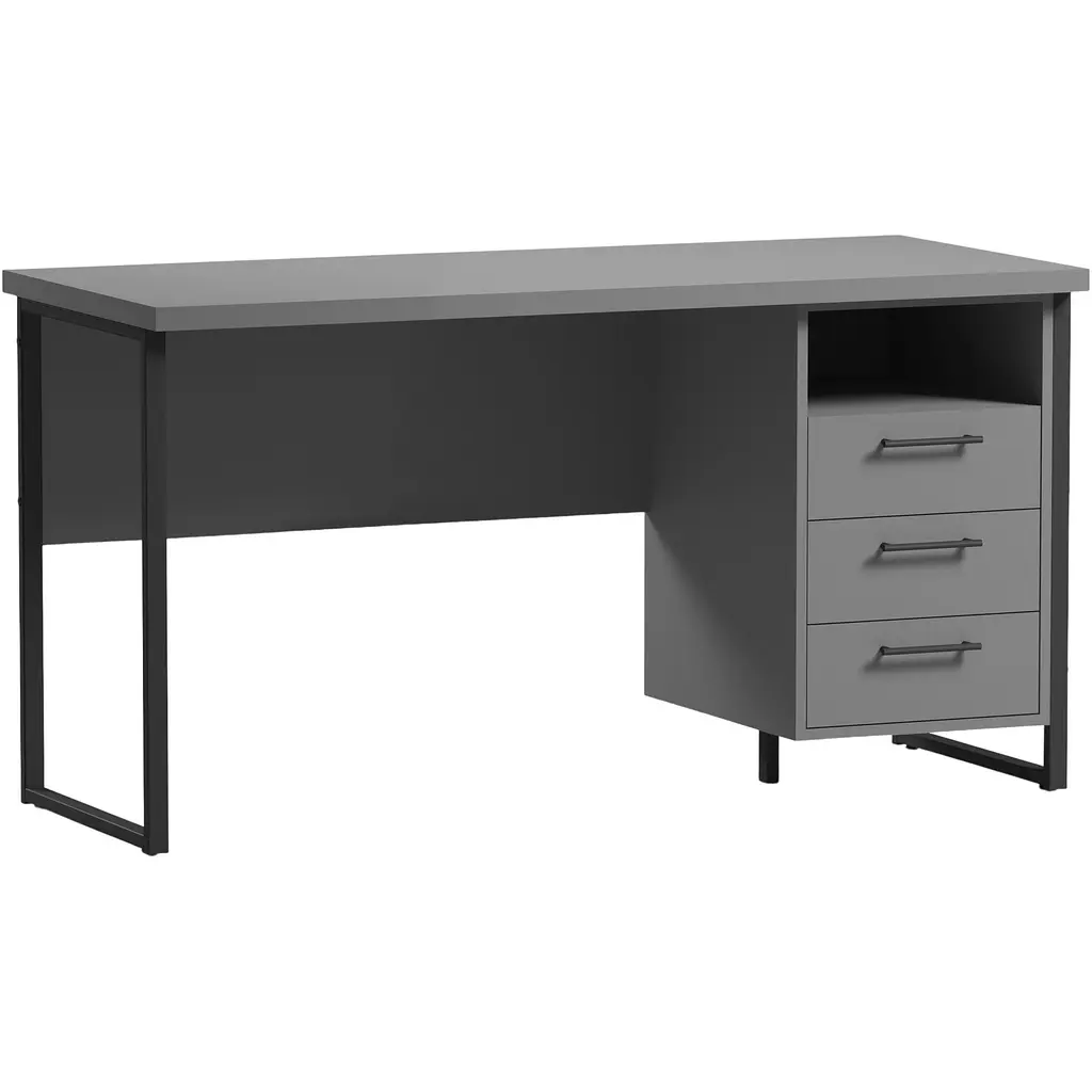 Стол прямой лофт с тумбой ОП-172 Orange-Line сочетает в себе просторное рабочее пространство размером 140х60х75 см с практической системой хранения. Металлический каркас черного цвета и элементы из ДСП под графит создают гармоничное сочетание индустриального стиля. Главным преимуществом модели является встроенная тумба с тремя выдвижными ящиками, которая обеспечивает удобное хранение документов, канцелярских приборов и личных вещей. Дополнительная полка в тумбе расширяет возможности организации рабочего пространства и позволяет держать под рукой необходимые предметы. Ширина 140 см предоставляет достаточно места для размещения ноутбука, документов и других рабочих материалов. Прочная конструкция с металлическим основанием гарантирует устойчивость и долговечность даже при интенсивном использовании. Стол универсально подходит для домашнего кабинета, офисных помещений и рабочих зон персонала. Стиль лофт с характерным сочетанием металла и древесины легко вписывается в современные интерьеры разных направлений. Функциональная тумба расположена сбоку, оставляя достаточно простора для ног под основной частью столешницы. Ящики оборудованы удобными ручками и плавно выдвижными механизмами. Оптимальная высота 75 см обеспечивает удобную работу в течение всего дня, а дополнительные системы хранения поддерживают порядок на рабочем месте.