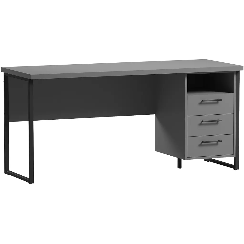 Стол прямой лофт с тумбой ОП-173 Orange-Line сочетает в себе просторное рабочее пространство размером 160х60х75 см с практической системой хранения. Металлический каркас черного цвета и элементы из ДСП под графит создают гармоничное сочетание индустриального стиля. Главным преимуществом модели является встроенная тумба с тремя выдвижными ящиками, которая обеспечивает удобное хранение документов, канцелярских приборов и личных вещей. Дополнительная полка в тумбе расширяет возможности организации рабочего пространства и позволяет держать под рукой необходимые предметы. Ширина 160 см предоставляет достаточно места для размещения ноутбука, документов и других рабочих материалов. Прочная конструкция с металлическим основанием гарантирует устойчивость и долговечность даже при интенсивном использовании. Стол универсально подходит для домашнего кабинета, офисных помещений и рабочих зон персонала. Стиль лофт с характерным сочетанием металла и древесины легко вписывается в современные интерьеры разных направлений. Функциональная тумба расположена сбоку, оставляя достаточно простора для ног под основной частью столешницы. Ящики оборудованы удобными ручками и плавно выдвижными механизмами. Оптимальная высота 75 см обеспечивает удобную работу в течение всего дня, а дополнительные системы хранения поддерживают порядок на рабочем месте.