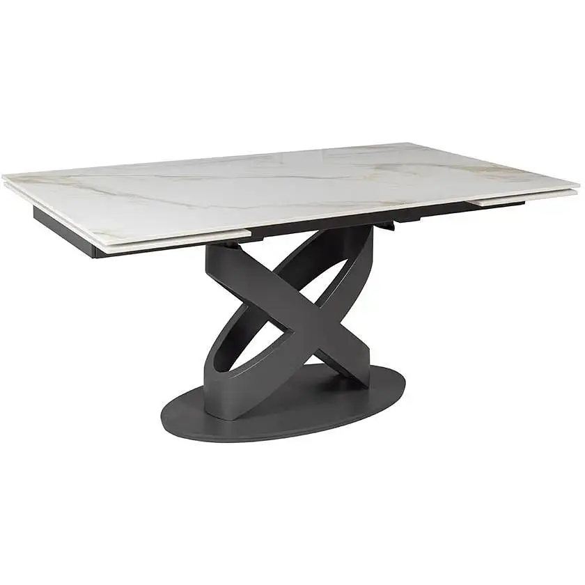 Раздвижная конструкция по бокам обеспечивает возможность увеличения рабочей поверхности при необходимости, что очень удобно для приема гостей или семейных обедов. Черная ножка придает столу элегантность и стабильность, делая его настоящим украшением интерьера.