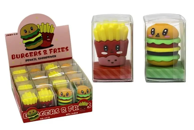Стругачка фигурная Фаст Фуд, 4 шт. с ярким дизайном. Изготовлена из пластика, с острым лезвием. Способствует удобной заточке карандашей. Идеально для школы. Создавайте аккуратные рисунки!