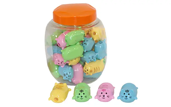 Стругалка Коты, в пластиковой банке, 40 шт., BQ-9034 с милым дизайном. Изготовлена из пластика, с острым лезвием. Способствует удобной заточке карандашей. Идеально для школы. Создавайте аккуратные рисунки!