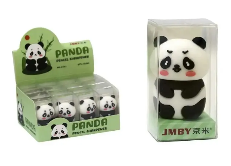 Стругалка Панда, 4 шт. с милым дизайном. Изготовлена из пластика, с острым лезвием. Способствует удобной заточке карандашей. Идеально для школы. Создавайте аккуратные рисунки!