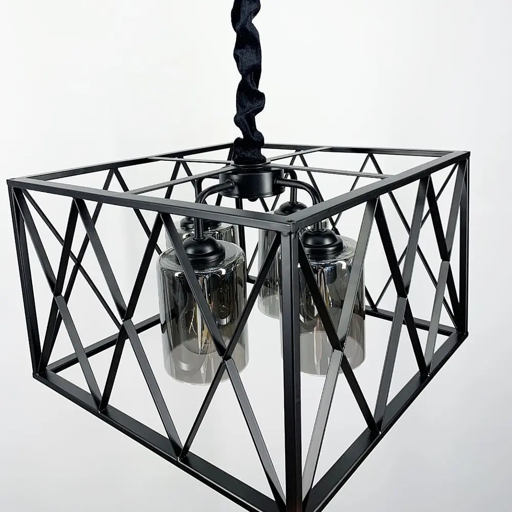 Сдержанная люстра в металлическом каркасе на 4 лампы Line.F Цвет плафона Янтарный