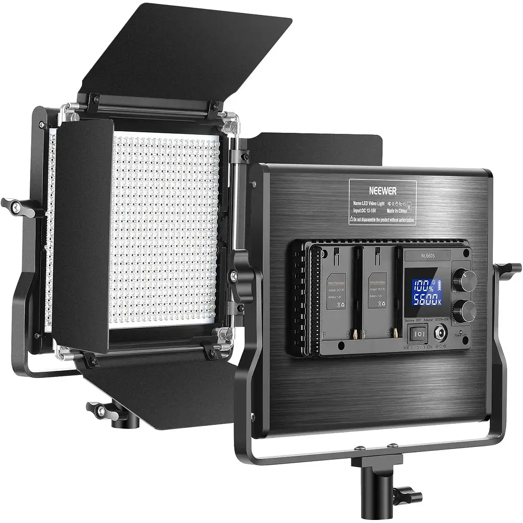 Neewer NL660S предлагает мощное освещение с 660 светодиодными лампами, обеспечивающими идеальное освещение для любой ситуации. Благодаря сочетанию 330 белых и 330 желтых светодиодов, устройство позволяет регулировать цветовую температуру от 3200K до 5600K, что позволяет легко настраивать свет в соответствии с условиями съемки. Такая гибкость делает его идеальным выбором как для фото-, так и видеооператоров.