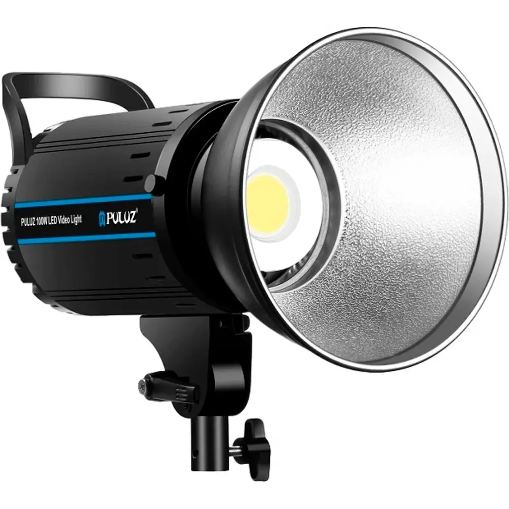 Студийный светильник оснащен светодиодом мощностью 100Вт и температурой света 5600К. Аксессуар дает возможность, удаленно с пульта управления, плавно регулировать яркость освещения от 10% до 100%.