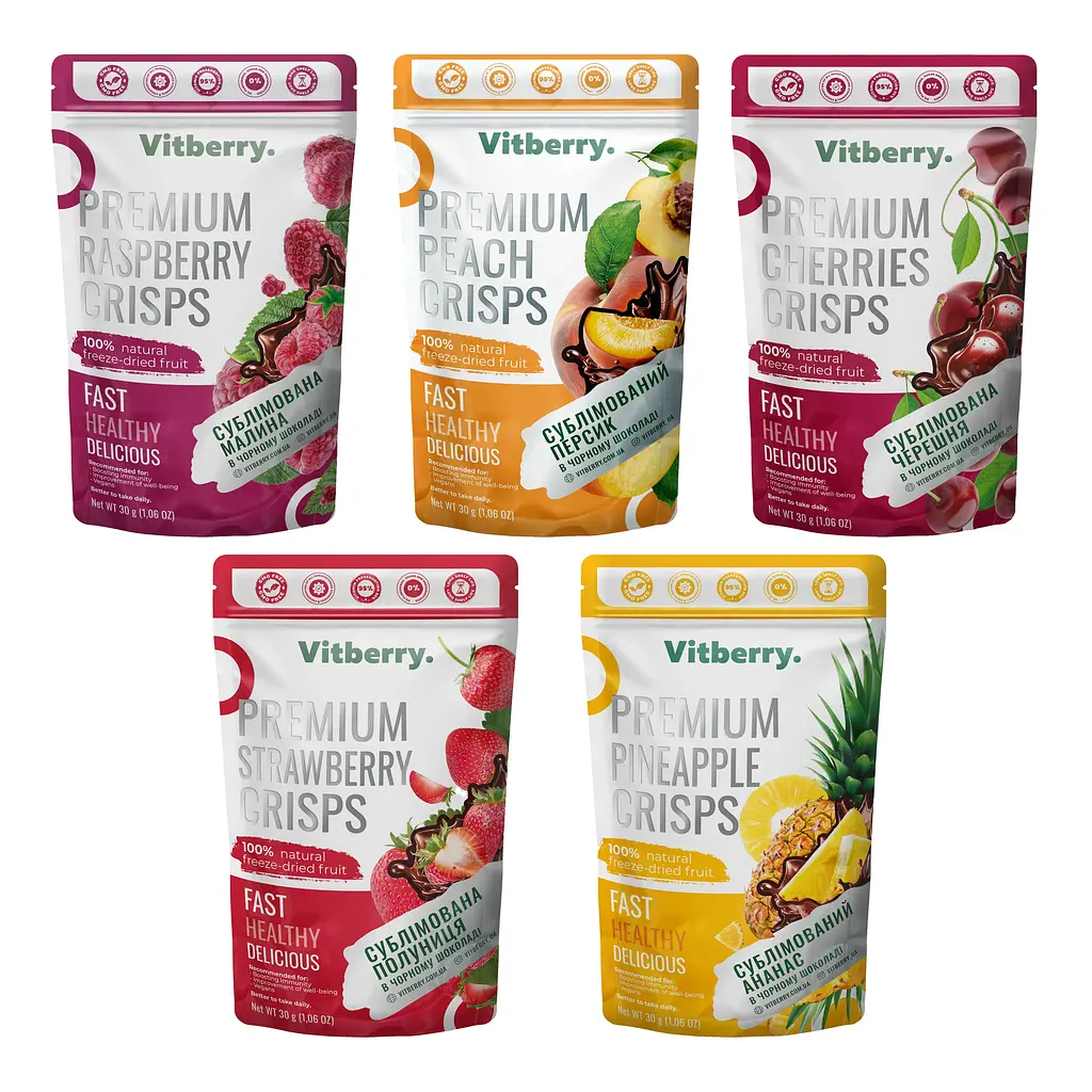 Эти наборы созданы для тех, кто ищет понятную и натуральную альтернативу традиционным кондитерским изделиям. Основная идея Vitberry — объединить природную кислинку настоящих фруктов со сладостью качественного шоколада. Благодаря методу сублимации (freeze-drying), из плодов удаляется только влага, при этом настоящий натуральный вкус, цвет и до 95% витаминов остаются внутри. Вы получаете легкий, хрустящий фрукт, который не содержит добавок или консервантов.