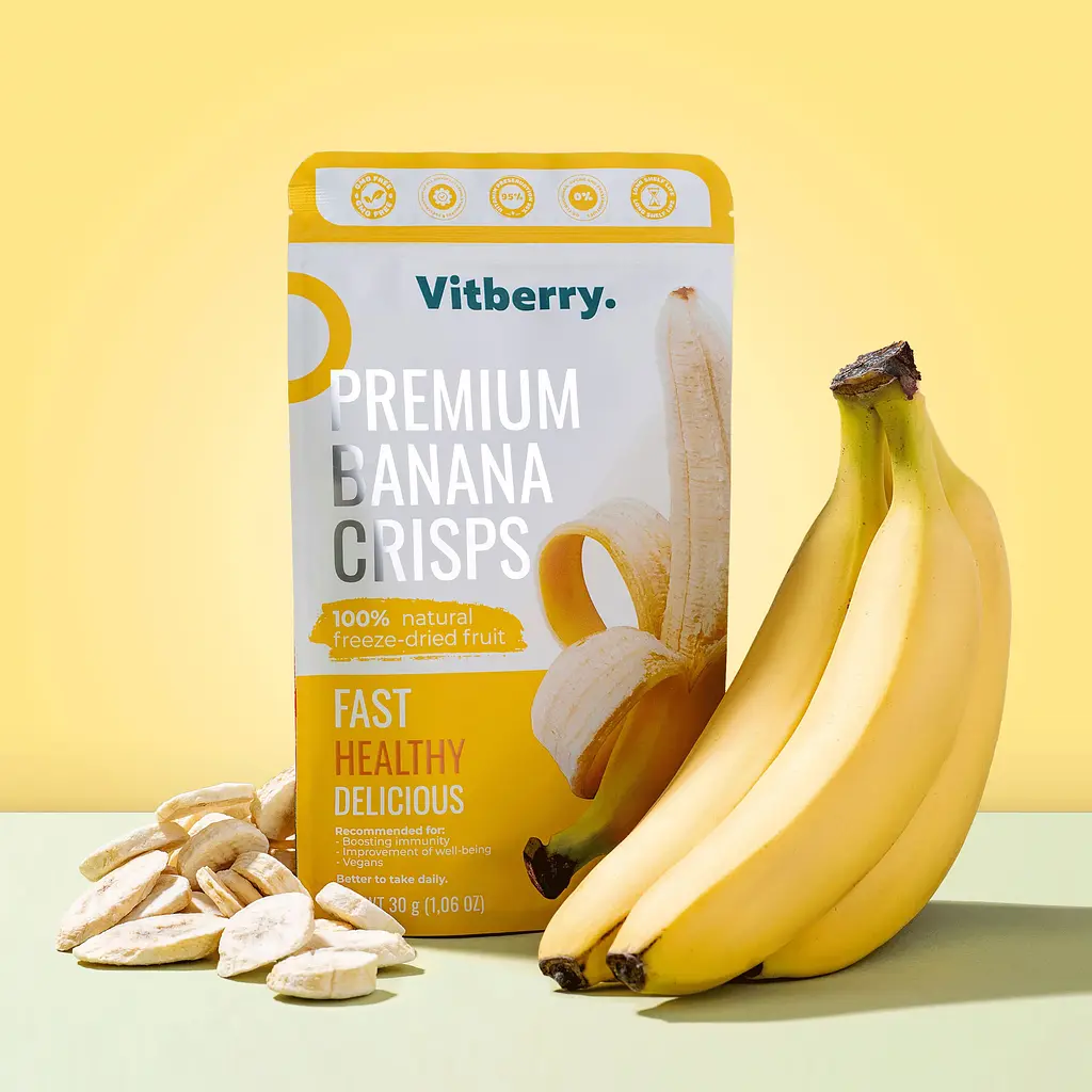 Сублимированный банан — природная энергия в каждом кусочке!Сублимированный банан — это must-have для тех, кто ищет питательный, натуральный и вкусный перекус без сахара и лишних калорий. Благодаря сублимации банан сохраняет не только свои полезные качества, но и сладкий вкус, что позволяет наслаждаться фруктом в любое время года. В интернет-магазине Vitberry вы можете купить сублимированный банан с доставкой по Киеву и Украине.